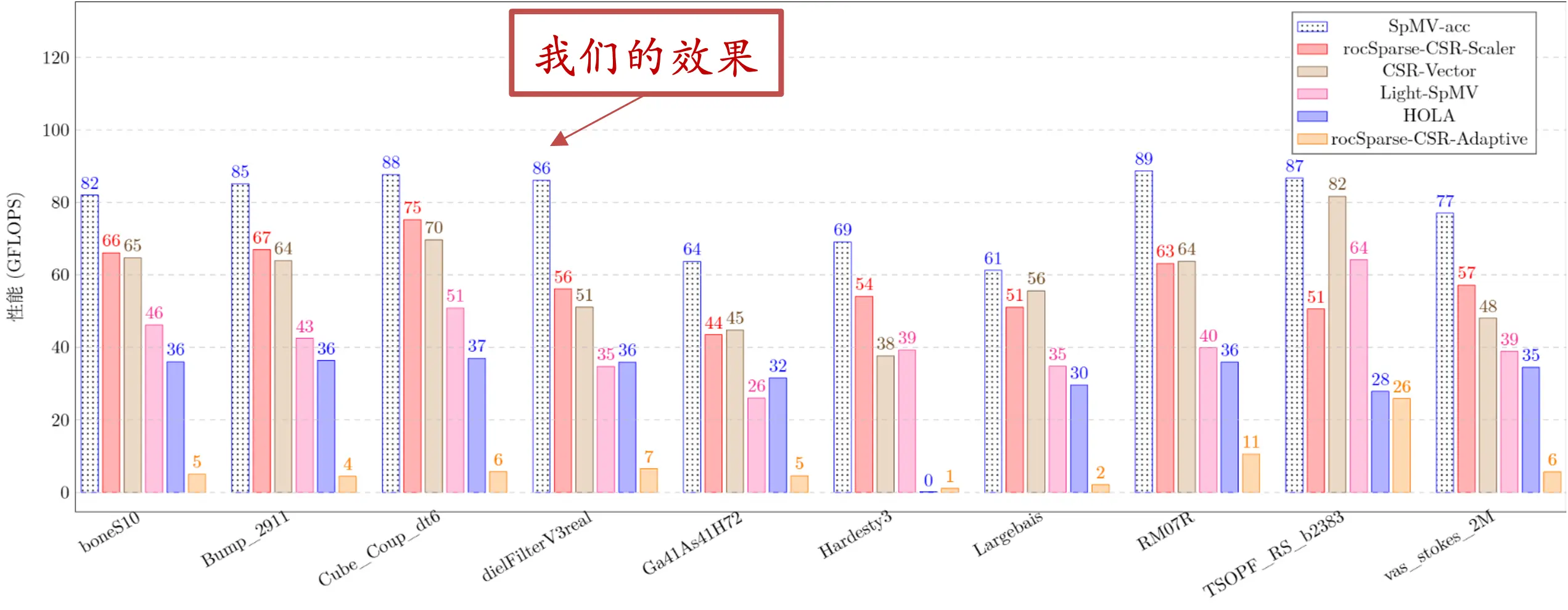 第二届“先导杯”计算应用大奖赛于2021年4月至10月举办,该赛专注于基础核心算法的探究、应用领域原创性开发的培育,以及软件环境、学科应用等方面瓶颈的突破。 多所重点高校、科研机构、知名企业的1500多名选手、1000余支战队积极参与,共产出数百份创新应用的移植、优化成果,涉及二十几个领域的交叉应用,为我国计算软件应用的生态建设添砖加瓦。 大赛共分为七个赛道,每个赛道设置一等奖一个,二等奖两个,三等奖三个。 其中SpMV(稀疏矩阵向量乘)赛道要求采用异构编程加速SpMV,重点关注双精度实数在异构计算平台上的计算性能。 实验室"PHP是最好的编程语言"战队突破重重难关,提出了适用于不同矩阵特征的创新性算法,在曙光计算平台上完成了SpMV的高效实现,创建了通用的 SpMV-acc 算法库,算法库中集成了适用于不同矩阵特征的多计算种策略,测试结果相对 rocSparse 算法库性能提升16%-70%,获得了较高的浮点计算性能和访存带宽。 代码现已在github开源:https://github.com/hpcde/spmv-acc (Apache-2.0 协议)。